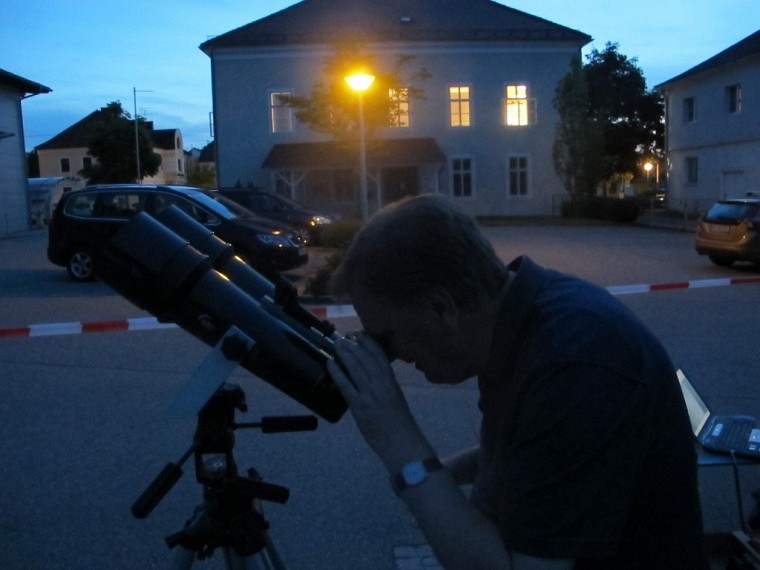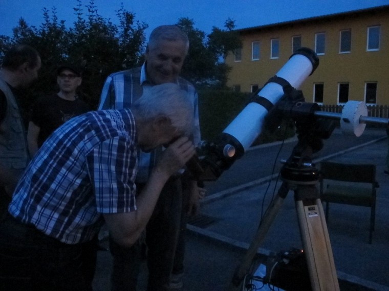 Der zweite Teil des Abends fand dann im Freien statt und gewährte einen direkten Blick in den nächtlichen Sternenhimmel. Am Parkplatz hinter dem Kulturhaus warteten bereits vier Teleskope und vier Experten vom Astro Stammtisch Ponner auf die Gäste. Die Teleskope waren bereits auf den Mond und auf den Jupiter etwas links unter dem Mond gerichtet, die beide am mittlerweile dunklen, wolkenlosen Nachthimmel über dem Reha Zentrum leuchteten. Durch die hervorragenden Teleskope konnte man die vielen Krater der Mondoberfläche deutlich studieren und den Jupiter mit seinen Farbringen erkennen samt den vier Monden, die ihn umkreisen. Diese laue Sommernacht, die den Blick in die „Sterne“ ungehindert gewährte, wird sicher allen ein unvergessliches Erlebnis bleiben.