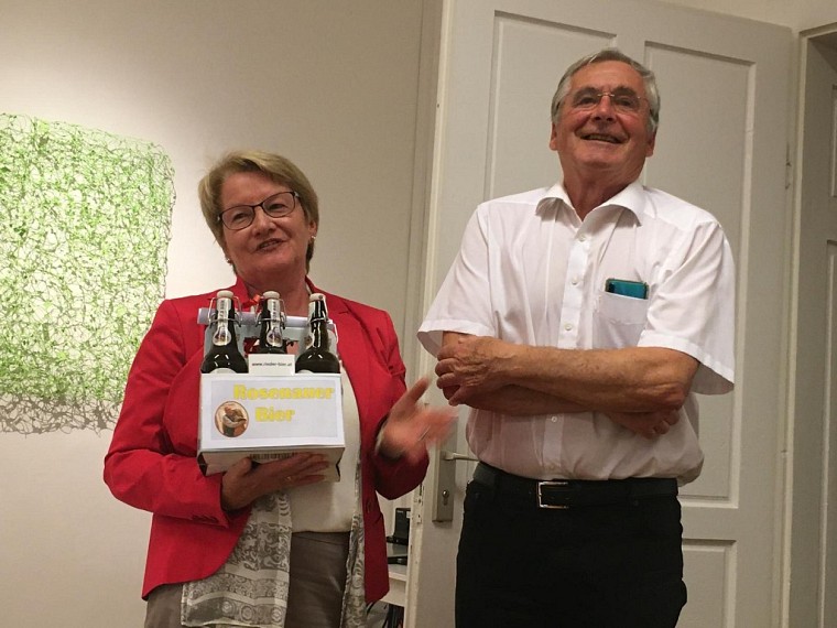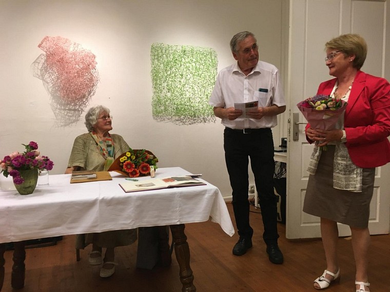 Die 1932 in Lohnsburg geborene Autorin und ehemalige Volksschullehrerin gab einen Querschnitt aus ihren schriftsprachlichen Gedichten. Sie gilt als die „Grand Dame“ der Literatenszene, so die Obfrau und Moderatorin Gerti Felix und hob besonders ihre ausdrucksstarken Gedanken heraus. Auch im benachbarten Bayern wird sie in Dichterkreisen als die Innviertler Philosophin geschätzt, merkte Kustos Freimut Rosenauer bei der Begrüßung an. Die musikalische Begleitung übernahm in ausgezeichneter Weise das Ensemble INAS unter der Leitung von Tina Breml. Zum Abschluss gratulierte Gerti Felix Freimut Rosenauer mit einem großartigen Gedicht zum 80.Geburtstag.